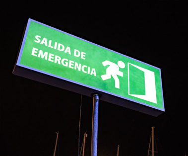 Salida de emergencia dotada de placas solares y baterías internas.